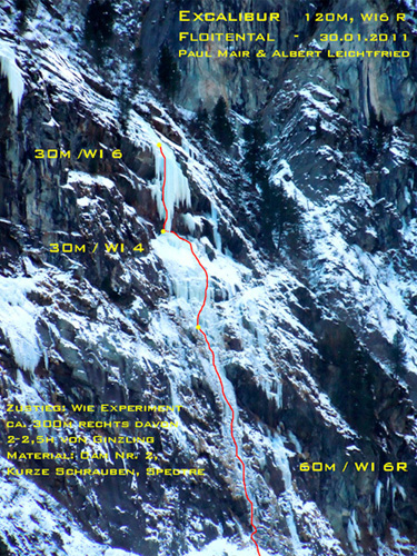 На 30 януари Лайхтфрийд и Паул Майр (Paul Mair) направиха първо (по всяка вероятност) повторение на “Das Experiment” (WI6+, 50 м, Шийстл-Хьолварт, Schiestl-Höllwarth, 2004 г.). След това изкачиха “Excalibur” (WI6/ R, 120 м) – маршрут, който предлага красиво и изискващо висока класа катерене – най-напред по тънка ледена глазура и по ледена колона на финала.