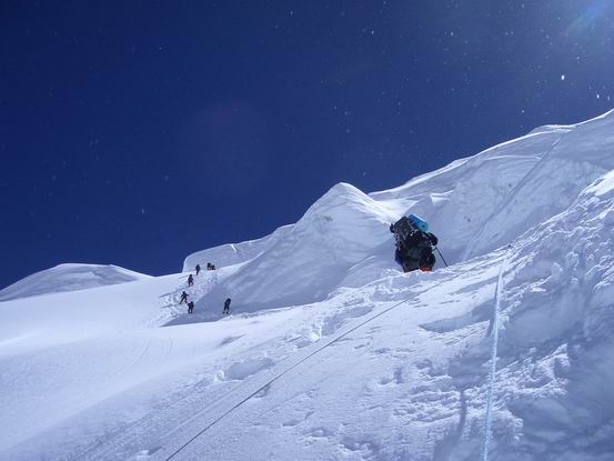 Докато слизахме срещнахме да се качват нагоре Господин Динев и Янко с тежки раници и един носач. За нас това е една предизвестена изненада. Българите в района взехме да се множим! По-късно се видяхме и с Мариана, качваща се към междинен лагер, която след първото си качване на лагер 1 беше слязла към BC.