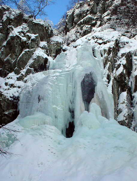 Ето как изглеждаше водопада събота сутринта, 21 януари 2006 г. Двата основни ръкава не са се затворили и тече. В средата между тях има монолитен лед около 4 м. но пръска вода и не е съвсем приятно.