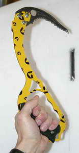![]() ![]() | “GRIVEL” И “SCARPA” Италианските “Grivel” и “Scarpa” демонстрират обувки и котки с нова система за прикрепване на последните. В GSbTM (“Grivel Scarpa binding”) котката се задържа отпред чрез огъната пластина, която влиза в специален отвор в подметката, а отзад е класическата автоматична закопчалка. Този комплект се слага на краката лесно, котките заемат по-малко място и са много по-сигурно прикрепени към обувките. Специалната подметка с отвор се произвежда от “Vibram”. В Мюнхен “Grivel” – един от водещите производители на съоръжения за любителите на dry-tooling-a и катеренето по лед, представят няколко нови модела от серията “Monster”. С използване на минимални средства “Grivel” въвежда ново качество на изглеждащия стабилен пазар на сечивата. То е потвърдено, между другото, от такива изкачвания, като зимното соло на Ули Щек (Ueli Steck) по тура “Young Spider” (1800 м, 7/ A2, WI6/ M7) на Северната стена на Айгер, направено с помощта на “X MONSTER”. Изненада събуди и първата пазарна новост на “Grivel” през 2006 г. . Това е “LIL' MONSTER” – късо и леко сечиво (32 см, 475 грама), предназначено за начинаещи. Дръжката му е от листова стомана, а ръкохватката е проектирана така, че да пази ръцете на неопитния катерач от съприкосновение с леда и снега. Следващият нов модел – “ALP MONSTER”, има по-традиционни форма и предназначение. Представлява доразвиване на “X MONSTER”, но е предвиден главно за алпийско микстово катерене, макар че поради опростената си форма може да служи и за лек пикел. “ALP MONSTER” тежи 550 грама и е достъпен в два размера – 38 и 44 см. “MONSTER” – първият модел от футуристична серия, се появи през 2004 г. с изненадващото решение ръкохватката да бъде изработена от еластична листова стомана. Това доведе до максимално снижаване на теглото и намаляване на цената. Серията суперсъвременни решения на “Grivel” за любителите на леда завършва каската “GLADIATOR” със защитна мрежа за лицето. |