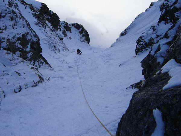 След серия от гледки към отвъдното, което при едно свличане на сняг по улея, за секунди ще стане ваш втори дом задълго и с адресна регистрация по постоянно местожителство, навлизаме в легендарния “Хипер кулоар”. Това е нещо, излизащо в основата на третото скално стъпало, дълго 150 м, доста лавинно, а в добри /студени/ времена предлага красиво катерене по добре замръзнал фирн с ледени стъпала на места.