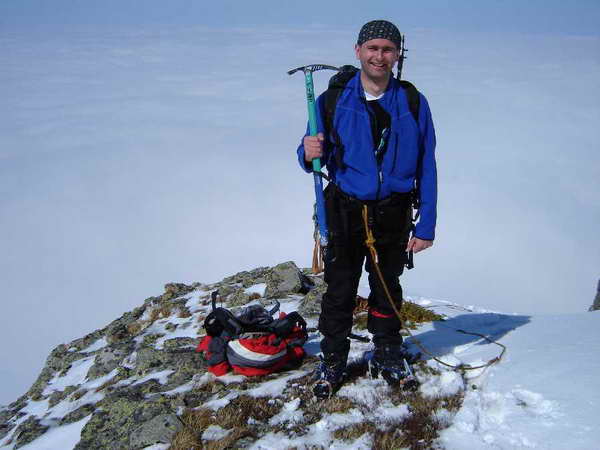 След кратко, но изпражниращо преживяване из лавинарника излизаме на гребена. Това неформално е и край на маршрута, за което си правя и снимка. На големи и сериозни състезания като например на Скакавица и Мальовица, бях виждал, че асовете на драй тунинга трябвало да се снимат задължително с кривите си сечива. Кой на рамо, друг ги кръстосал като мумията на Тутанкамон фараонските атрибути, а трети си ги заврял на едно друго място... Че и аз снимка да имам, макар че не съм гимнастик.