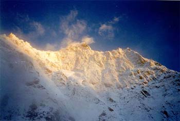 Това за съжаление не е точно така. А и първият маршрут няма как да бъде руски, защото по северната стена на Жану са туровете на Томо Чесен – VI+, А1-А2, 65-75° на ледените пасажи (28-29 април 1989 г.) и на японци, които довършват започнатото от новозеландци през Голямото фирново поле (т. нар. “Wall of the Shadow”) и източния гребен на Кумбакхарна, (11, 12, 13 и 14 май 1976 г.). Не е преминавана централната й част с височина 3000 м и тя наистина представлява един от най-големите спортни проблеми в Хималаите.