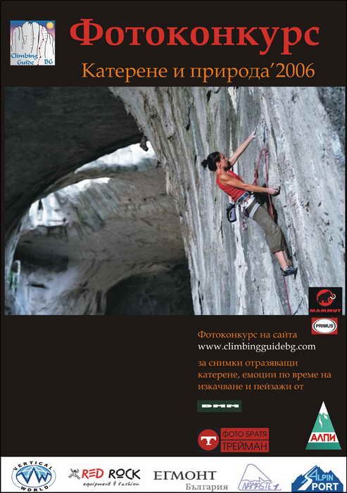 Завърши журирането в 4-тия фотоконкурс "Катерене и природа" на сайта Climbingguidebg.com. Каним всички участници в конкурса, членовете на журито, спонсорите, журналисти и всички приятели на тържеството за обявяване на победителите! То ще състои на 22 февруари, четвъртък, в столичния клуб ЕНИГМА.