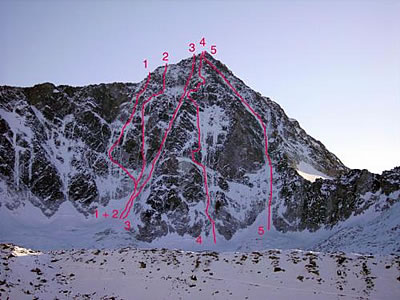 Този пирамидален връх има 750-метрова варовикова северна стена, изкачена за първи път през 1989 г. от известния солист Андреа Мути (Andrea Mutti). Тогава, след атака нон-стоп, той премина “Hallo Woman of My Dreams” (V/ 5 M5, 700 м).Тазгодишните условия направиха трудния подход през дълбокия сняг, който покрива ледника Адамело, много лесен и приятен. Така невероятната пирамида на Адамело отново се оказа в центъра на вниманието на италианските катерачи, особено на тези от Бреша.