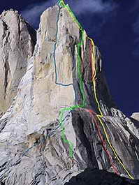 На снимката – Aguja Desmochada (toscoclimb.it) с туровете: