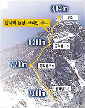 След внимателно проучване на топографията на района, Парк Йонг-Сеок е набелязал маршрут, който започва от Западния циркус и тръгва право нагоре, малко вляво от Пътя на руснаците. Последните 1100 м съвпадат с най-трудната част на Западния гребен, по който върви т. нар. Словенски маршрут, изкачван единствено от четирима словенци, един хърватин, един шерп (1979 г. ) и петима българи (Христо Проданов, Методи Савов, Иван Вълчев, Николай Петков и Кирил Досков, 1984 г.).