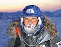 Южнокореецът Парк Йонг-Сеок преди няколко дни бе евакуиран с хеликоптер от района на Беринговия пролив, който се мъчеше да прекоси със ски. Почти без спиране вкъщи той се отправя към Еверест.