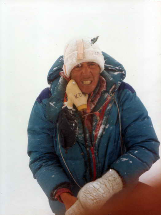 18,15 часа. Леко пропукване в радиостанцията и глас: „Аз съм на върха, на върха съм — Христо!" Ура-а-а! — чувам до мен. Виждам как от палатката изскача Кънчо Долапчиев и продължава да вика и навън. Срещу мен се задават хора, много хора — наши алпинисти, шерпи, индийски алпинисти, офицерът за свръзка на индийската експедиция, ръководителят на индийската експедиция... и ръце, ръце, протегнати за поздрав. Спомням си само, че подадох и аз ръка на полковник Кулар и просто влетях при Стефчо в палатката с радиостанцията.