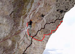 Алекс се изкатери по маршрут, който не съвпада напълно с оригиналния. Неговият вариант през 40-метровия надвес най-напред върви вляво от него, след това го пресича и продължава вдясно. Немският катерач отдели 19 дни за изучаване и подготовка на тура. “Маршрутът е изключително атлетичен – пише Хубер. – Той е поредица от дълги и ефектни движения между често неочаквано големите хватки. Осигуровката, въпреки спитовете, е подчертано “спортна”.