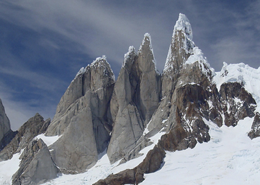 Масивът на Серо Торе от запад (най-висока е най-дясната кула).
