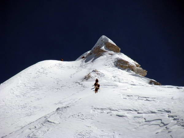 Връхната пирамида на Манаслу. Това е точката  до която достига Петър около 13 ч на 3 октомври 2008 г.