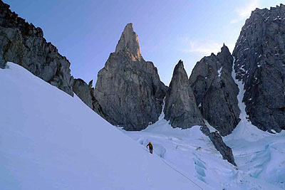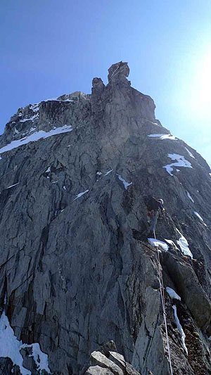 Алпинистите стигнаха под Бъркит Нийдл с хеликоптер. От върха слязоха с рапели по южното му ребро, изкачено за първи път през 1995 г.