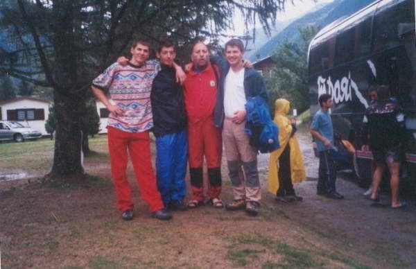 Минко в компанията на своите ученици по време на учебна експедиция до връх Мон Блан, Шамони, Франция