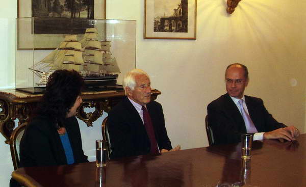 В началото кратко експозе направи посланника, след това почетния гост. Още преди това няколко минути Джиджи разговаря с Бонати на един от езиците които владее (иначе срещата беше с преводач от и на италиански). След това беше дадена възможмност за въпроси. Бонати, който по принцип отказва срещи и интервюта, отговаряше много подробно и неформално, включително разказа доста надълго за някои от забележителните си изкачвания - соловото на Матерхорн и за експедицията на K2, когато първото изкачване на върха въобще става възможно благодарение на неговите усилия, без самия той да стъпи на върха.