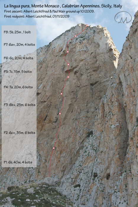 Австрийският гид Алберт Лaйхтфрийд (Albert Leichtfried) заедно с партньора си Паул Маир (Paul Mair) направих нов маршрут в Сицилия от няколко въжета La lingua pura, 7c (6c задължително), 200 м.