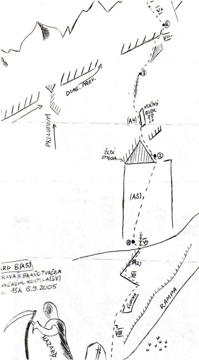 “Ключовото въже на този маршрут не може да бъде сравнявано – от психична гледна точка – с нищо, което до този момент е било катерено в Татрите с изкуствени опорни точки [...] Ако някой има психични или финансови проблеми, иска да избяга от скуката, изпаднал е в депресия след нещастна любов или изневяра, нека незабавно тръгва натам – “Hazard” го очаква на Виелки Костол!