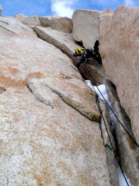 Преди това изкачване, за “загрявка”, Роже и Симон преминаха и Калифорнийския маршрут (“Californian Route”, 5.11, 55°, 650 м, +300 м) на Фицрой.