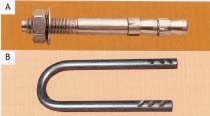 Винаги очаквайте най-лошото от болтовете, когато се катерите по непознат тур. Оглеждайте ги внимателно, преценете колко са стари, обърнете внимание на диаметъра на тялото (общоприетият стандарт е 10 мм) и се уверете, че планките са добре затегнати и не се въртят. Старите болтове са много съмнителни, затова внимавайте. Най-добрият съвет в този случай е: "Който се съмнява, оцелява!" В катеренето се използват три типа болтове. ! Болтовете не са съвършени Болтовете не са вечни - под влиянието на температурата те се разширяват и свиват и могат да се измъкнат от скалата или лепилото, което ги задържа. Никога не се доверявайте само на един болт за организиране на рапел или установка, колкото и сигурен да ви изглежда. Винаги дублирайте. Съставни и самоделни болтове в ръчно издълбани дупки - спитове и ролплъгови клинове (ролплъзи) В наши дни този тип болтове се използват рядко, но все още могат да се срещнат по стари турове и могат да бъдат безценни, ако се катерите по голяма стена и не можете да поставите друга осигуровка. Трябва само да се помни, че дупките са дълбани от уморени и вероятно уплашени катерачи, които са се старали да завършат работата, колкото се може по бързо - ръчното пробиване на скалата е много трудоемка работа. Много от тези болтове просто не са влезли достатъчно дълбоко. Телата им обикновено са само 5-6 мм в диаметър и 2-3 см на дължина. Рядко са произведени (ако изобщо има такива) от неръждаема стомана. На много места желязото ръждясва изненадващо бързо - затова внимавайте!