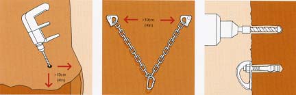 1. Болтовете трябва да се забиват поне на 10 см от ръбове, в здрава скала. |