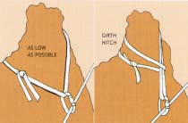 колкото се може по-ниско // възел "седло" *Направете седло на лентата, ако има опасност въжето да я изхлузи от осигуровката. *Друга възможност е да натоварим лентата с допълнителна тежест.