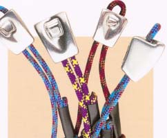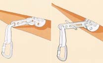 Странно, но полезно приспособление е клемовадачът. В повечето случаи има малки кукички на единия край, които улесняват изваждането на заклещени френдове. Съвети за поставянето на клеми и ексцентрици: *Когато поставите клемата, закачете примка на нея и я дръпнете рязко. Така ще я заклещите по-добре. *Клемите могат да се поставят в противоположна ориентация (виж фигурата по-долу), закрепени чрез примки или заклещени една в друга.