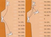 *Да организира стабилна площадка: никога да не разчита само на една точка на закрепване; да уеднакви натоварването върху всички точки на закрепване с помощта на примки, ленти или основното въже; да се увери, че осигуровките могат да издържат натоварване във всички посоки; да осигурява така втория, че да не го дърпа, което може да причини падането му под таван, на траверс или върху перваз. * Да се увери, че вторият знае как да задържи падане - било то най-обикновено, или голямо. *Ако се катерите в отдалечен район и наоколо няма други катерачи, да съобщи на някого къде отива и кога се очаква да се върнете. Не е зле да се разберете с някого как да действа, ако не се върнете в уреченото време. *Да следи всички в свръзката да съблюдават изискванията за опазване на околната среда - поведението при достъп до скалата; изнасянето на собствения боклук; забраните за палене на огън, късане на растения, безпокое не на животните и така нататък. Падане и фактор на падане Никой не иска да пада, но рано или късно това се случва на всеки катерач. При съвремен ната катерачна екипировка - добри динамични въжета, удобни седалки, подходящи средства за осигуряване - това вече не е толкова болезнено, както е било едно време. В много случаи (особено при спортното катерене) на падането се гледа като на неразделна част от играта. Да падаш безопасно, също си има чалъм - и със сигурност научаването, как да падаш, не е навредило на никого. Рефлексите, които човек може да си изгради при тренировъчни условия, могат да помогнат в по-сериозни ситуации. Използването на ръцете и краката за омекотяване на удара; падането под таван, без да си удариш лицето; контролирането положението на тялото, за да не се обърнеш надолу с главата - всичко това може и трябва да се практикува. С понятието "фактор на падане" се означава съотношението между височината на падане и дължината на разпъна тото въже, което обира удара (височината на падане се разделя на цялата дължина на разпънатото въже между осигуряващия и водача). Точно това разпънато въже обира енергията на падане чрез елонгацията си.