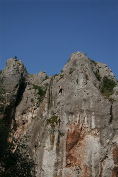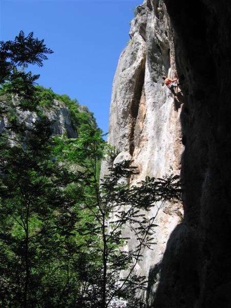 Sicevo gorge is situated on the road E-80, that connects Nis with Sofia. If you are arriving from the direction of Belgrade by the freeway, continue on towards Sofia. After the village of Ostrovica that is situated in the middle of the gorge, you’ll pass a couple of tunnels. After tunnel nr.3 you’ll come up to a long straight part of the road, near the end of the straight you’ll find a small parking lot on the left side of the road. Above it is the competition crag. If you are arriving from the direction of Sofia, pass the tunnel nr.4. After 500m you’ll come up to the long straight. As soon as you get on it you’ll come up on the small, already mentioned, parking lot on the right side of the road.