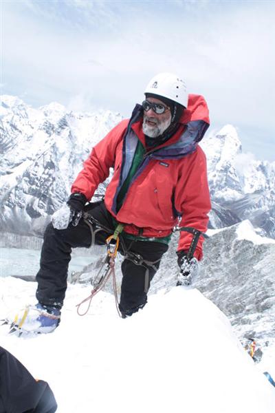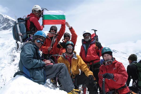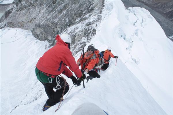 По опънатите парапети се изкачихме на жумари, но някои от тях взеха да изпускат, защото въжетата бяха найлонови... По опънатия вече от корейска експедиция /с 68-годишен покорител на 14-те 8-хилядника в редиците си, за когото снимаха филм/ парапет, долазваме по тесния като бръснач ръб до заветните 6189 м. Едвам се събираме на върховата площадка, но мъките, поне нагоре, свършиха...в 10,30ч. Този ден Айланд пик ще го запомни като български и корейски. По 10 българи и корейци и още няколко от други нации се радвахме на необхватната панорама. Хималая ни държеше в прегръдката си и ни беше хубаво!