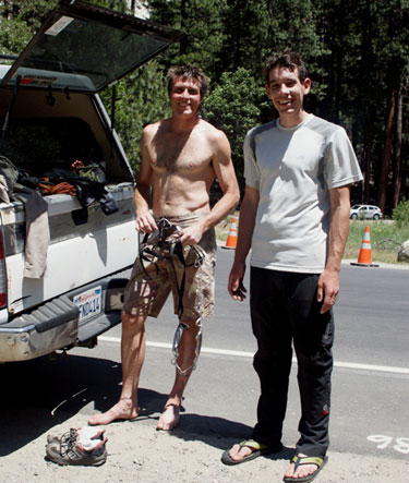 Най-напред тръгнаха по “The Nose” (5.9 C1, 31 въжета) и само след 4 часа и 15 мин бяха на върха на Ел Кап. Шон водеше по едната половина от маршрута, Алекс – по другата.