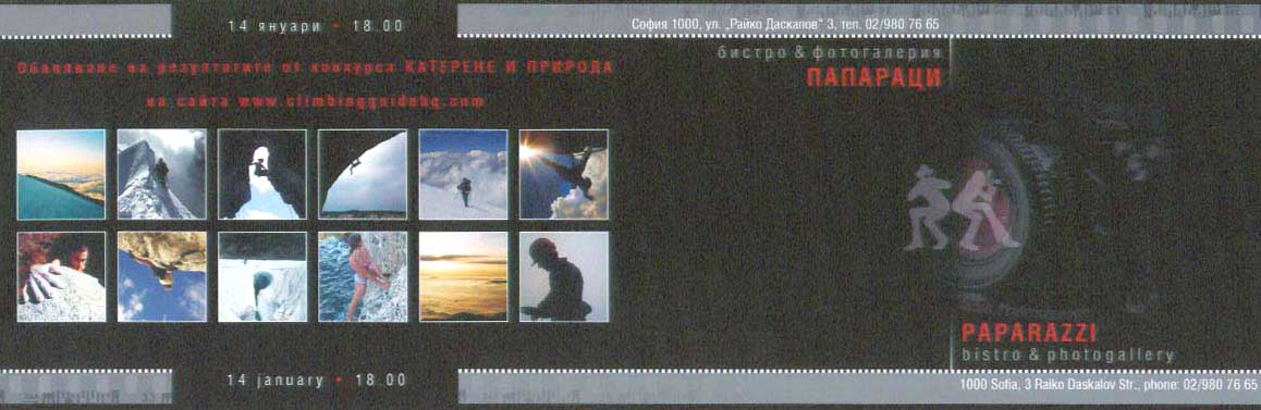 Тази вечер в меката на фотографите "Папараци" ще бъдят обявени и ще стане награждаването на победителите във фотоконкурса на Climbing Guide "Катерене и природа".