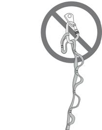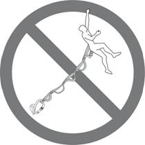 Важно: Неправилната употреба на продукта може доведе до сериозни динамични натоварвания! Когато сте закачени на площадката (или в друга точка от осигурителната верига) с дейзичейн, НИКОГА не се качвайте над осигуровката. (фиг.5) В случай на падане, примката няма да абсорбира удара и в резултат на това тялото ви, осигуровката и цялата осигурителна верига ще понесат СИЛЕН динамичен удар. В следствие на което може да нараните себе си, да извадите точката на осигуровка или да повредите цялата осигурителна верига, което може да доведе до падане с фатални последици.