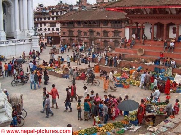 Катманду, зеленчуков пазар на Дарбър скуеър