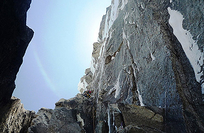 Роландо Моралес на headwall-а, чието преодоляване отне на свръзката шест часа
