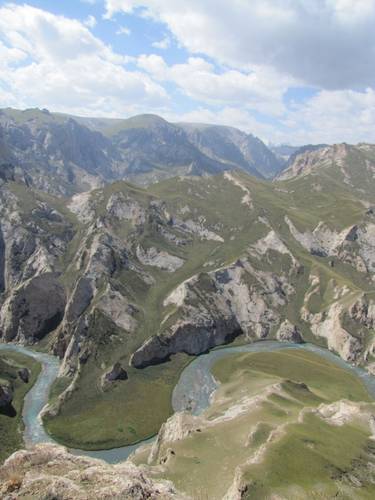 “Районът, за който става дума, е разположен в Киргизстан, в центъра на Тяян-Шан. Огромен варовиков масив – като приказен град – израства между гранитните простори. Мощните реки Аксай, Мудрюм, Кок-Кия, Каратор, сливайки се в едно цяло – река реку Кокшаал, образуват най-загадъчния и труднодостъпен планински възел – плетеница от дълбоки каньони и причудливи меандри. Прорязвайки варовиковия масив, те не само образуват относително плоско плато, но и създават рядко красив вертикален свят” – пише Сергей Дудашвили, президент на Фонда за опазване и изследване на пешерите в Киргизия.