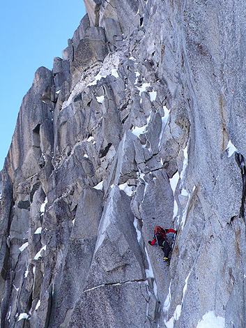 На третия ден водачеството бе поето от Рьоми, който изведе свръзката до горното снежно поле. Оттам можеха или да траверсират до Реброто на Меснер, или да продължат право нагоре по скален терен до върха на втората кула. Избраха втория вариант и след drytool-пасаж стигнаха до върха на Реброто Турние.