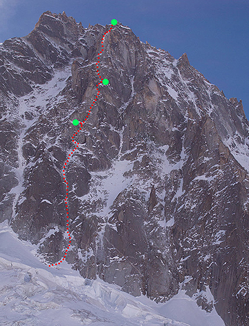 Потенциалната линия прави впечатление на Патрик Песи преди 15 г., когато прави първото зимно изкачване по близкото Ребро на Меснер, намиращо се вляво от реброто Турние (Pilier Tournier). Патрик запазва проекта си в тайна до пролетта на 2010 г., когато с Жером Пара правят неуспешен опит заради лошо време.