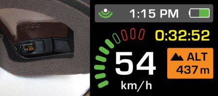 На екрана могат да се видят координатите на мястото, където се намираме, скоростта на движение, надморската височина, часът и температурата. Освен това цялото трасе на движение се регистрира в паметта и след прехвърлянето му с USB в Google maps можем по ефектен начин да се похвалим на близки и приятели. Управлението се осъществява чрез три големи бутона. А литиевата батерия осигурява захранване в продължение на 7 часа.