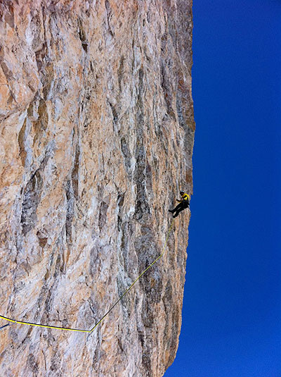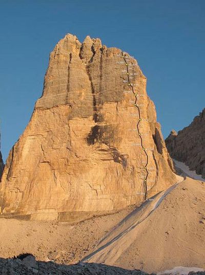 Линията “Pressknödl” (400 м, 7c) на Чима Овест ди Лаваредо