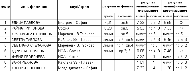 Класиране - Excel файл