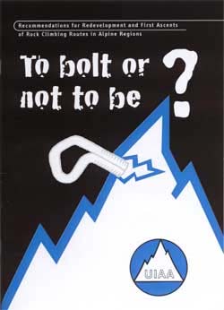 This is well known document "Recommendations for redevelopment and first ascents of rock climbing routes in alpine regions. Here with foreword by Ian McNaught-Davis, UIAA President, and included comments and articles.