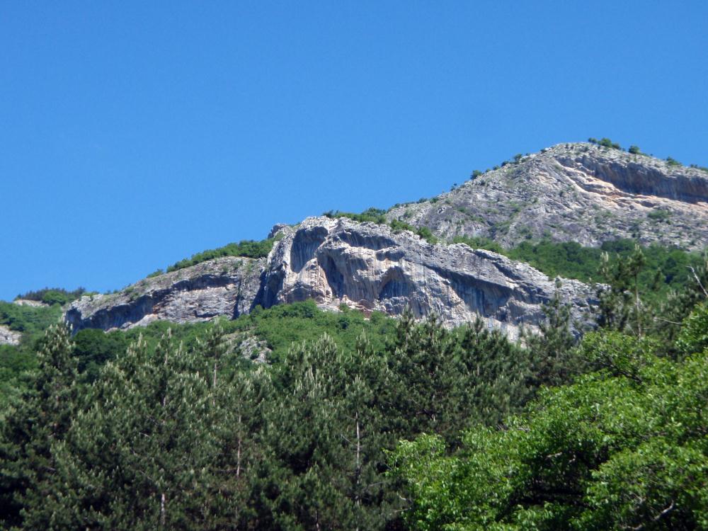 Снимка на Стегите от посещението ни през май 2009 г., когато възникна идеята да започнем разработването на обекта. По това време още не знаехме наименованието на скалния венец - него научихме по-късно от местните хора. Сн. Н.Петков.