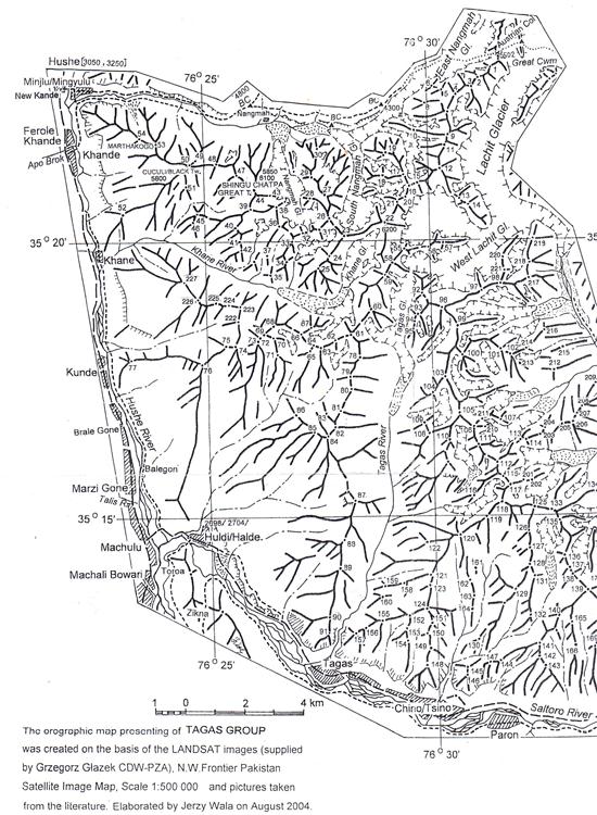 In the course of this investigation, we used information and maps by Jerzy Wala; other sources were Google Earth, the 2005 Annual Book of the Korean Students’ Alpine Federation as well as verbal reports from inhabitants of Khane Village and locals that took part in the 3rd Korean expeditions in the valley.