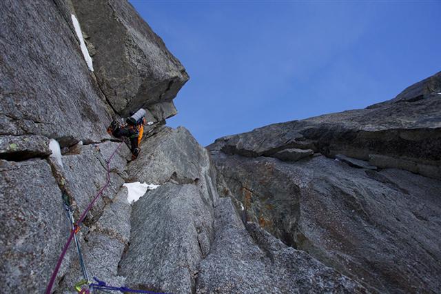 Това вероятно е първо изкачване в подобен стил през зимата на този маршрут. "Швейцарската машина" Щек и алпийския фотограф Грифит са имали страхотно време, но също така екстремално ниски температури - започнали са изкачването през нощта при -22°.