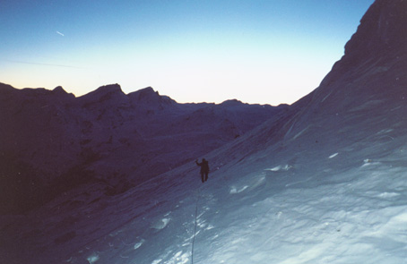На върха ги посреща слънцето, снимат се по острия ръб, до двуметровия железен кръст. Следва трудно слизане към заслона Солвей на Швейцарския ръб. В него нощуват. На другия ден към 11 ч започват слизане и до вечерта се прибират в х. Хьорнли, където виждат и първите хора през последните няколко дни.