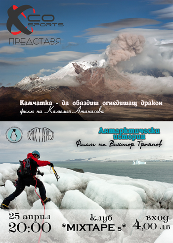 Изкачване на вулкан в Камчатка и ски спускания в Антарктида – тази уникална комбинация ще ви предложим на 25-ти април 2012 г., сряда. Няма да ви трябва оборудване! Елате само с желанието да гледате изключителните филми, представени от XCoSports.