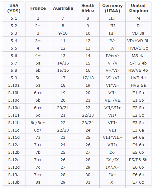 Категоризацията на маршрутите, популярна под името Ewbank, се използва в Австралия, Нова Зеландия и Южна Африка. Разработена е в средата на 1960 година от John Ewbank. Той въвежда и "М" системата за изкуствено катерене. Цифровата категоризация Ewbank е отворена и започва от 1  (ходене) до най-трудната в момента потвърдена степен 35. Интересно да се отбележи, че с годините категоризациите в Южна Африка и Австралия започват да се разминават с една до две цели категории. Категоризацията Ewbank отразява цялостната трудност на маршрута, като в нея се включват дължина, ангажираност, осигуровка и други по-малки фактори.