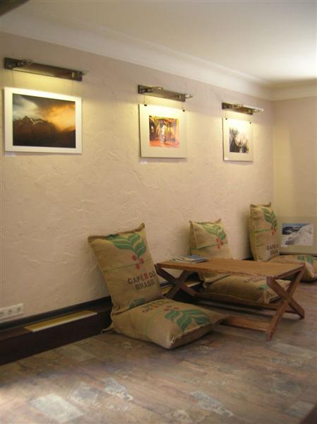 Можеш да седнеш на чувалите пълнени със слама, да си четеш нещо и да си пиеш кафе, чай, бира, лимонада или оранжада.