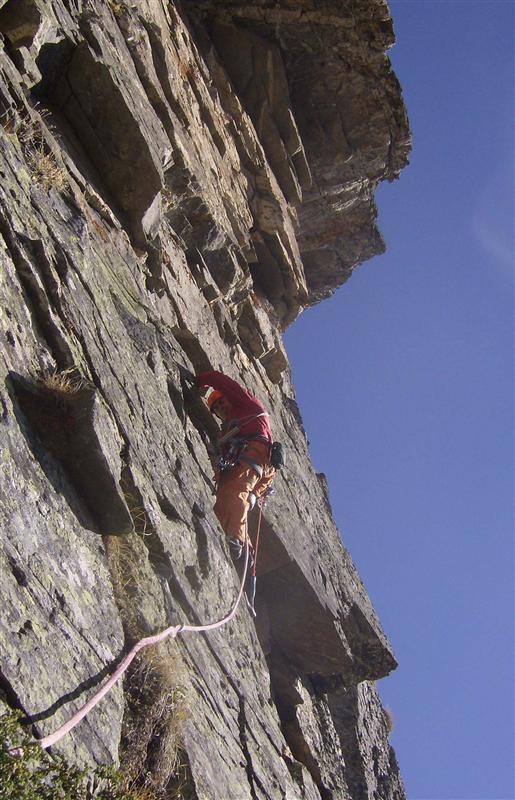Турът започва с характерна дюлферова цепнатина в средата на стената, има и клин, който маркира началото. Категорията на първото въже е 5+/6-, като ние го направихме на две части, като втората част около 15 м води Байно, 4+/5-. На площадката има оставени два добри клина. Като цяло клиновете, които оставихме са 9 и всичките са добре забити.