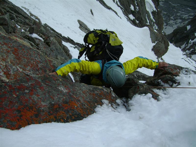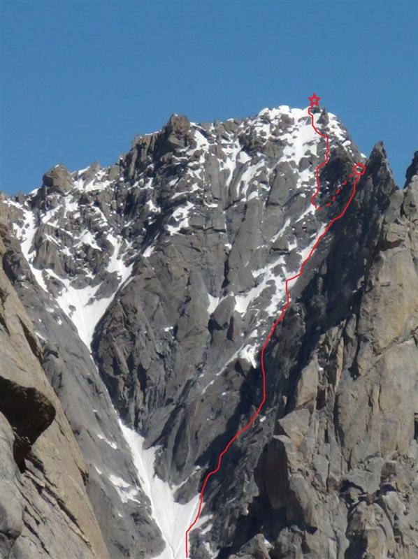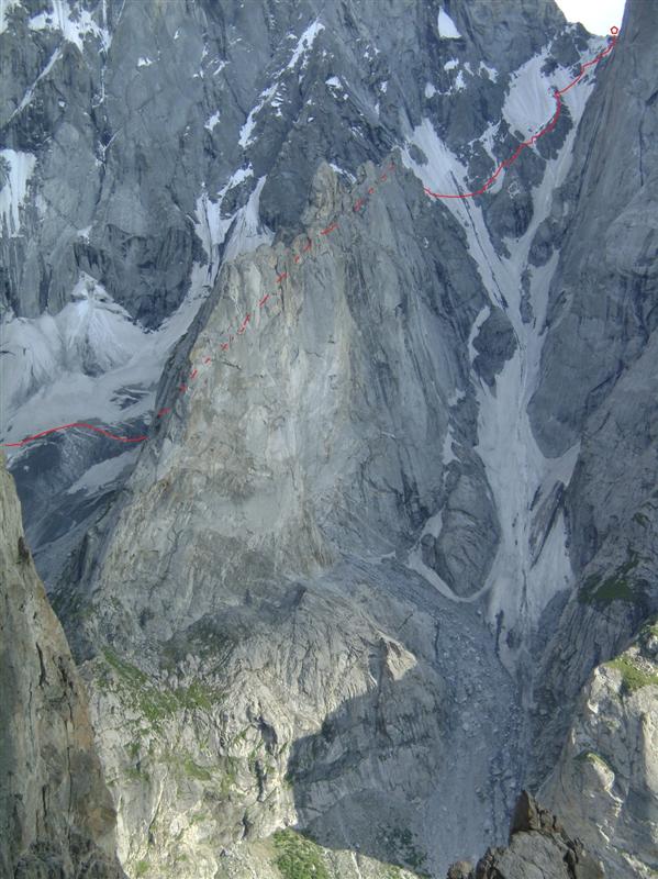 Маршрутът: „Източна стена“ 600 м, AI3, 6b, предимно 5b/c, в алпийски стил с един бивак на Българския превал. Достигането до него е 300 м лед, сняг, скални пояси, опасно (да се преминава до 8 ч сутринта). От превала нагоре 13 въжета по 50 м. Използвани са само клеми и френдове като междинни осигуровки. Оставени по два скални клина на площадките. Слизане по пътя на изкачването с 11 рапела и 80 м откатерване.